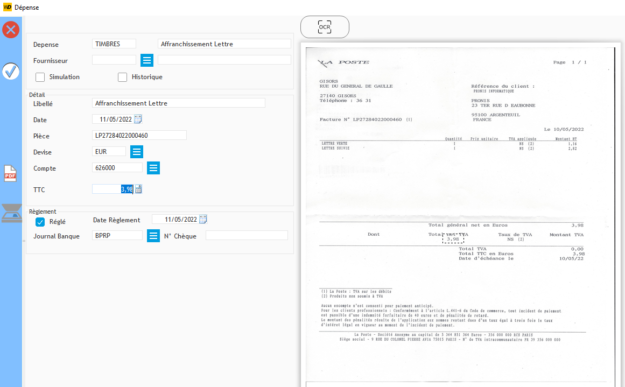 ATOME permet de saisir des factures d’achat en lien avec le PDF d’une facture.