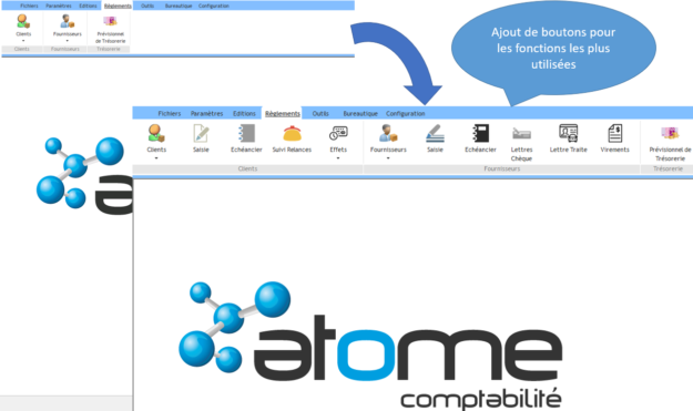 Afin de faciliter l’accès aux différentes fonctions, les fonctions les plus utilisées ont été ajoutées au menu