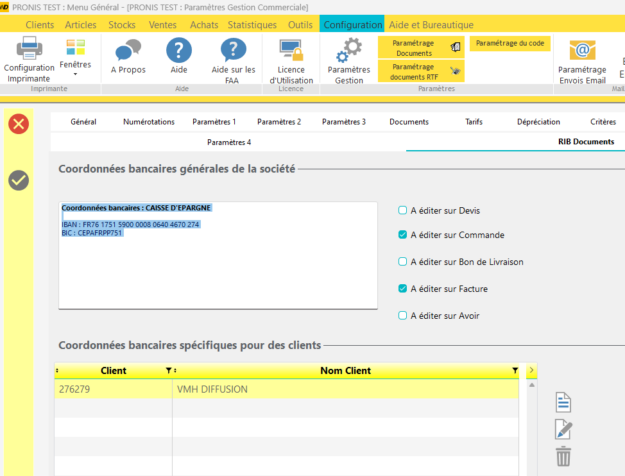 Il est maintenant possible de gérer un texte RTF des coordonnées bancaires qui seront éditées sur les documents de vente.