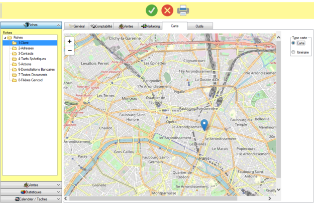 Sur les écrans ayant une adresse ou il peut être intéressant de visualiser l’emplacement sur une carte, une fonction de géopositionnement a été ajoutée.