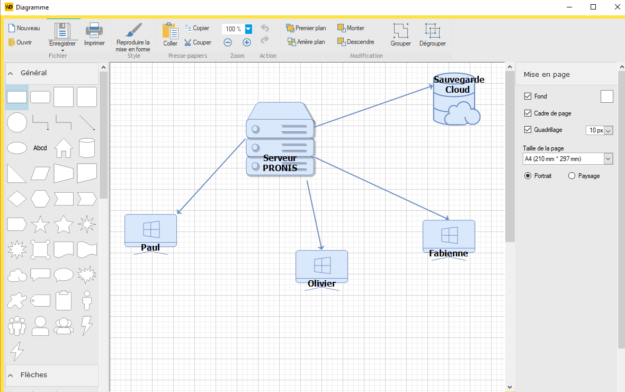 Si vous associez un document de type diagramme dans les documents GED contacts, article, production, ventes et achats, ce document sera ouvert avec la fenêtre spécifique de gestion des diagrammes.