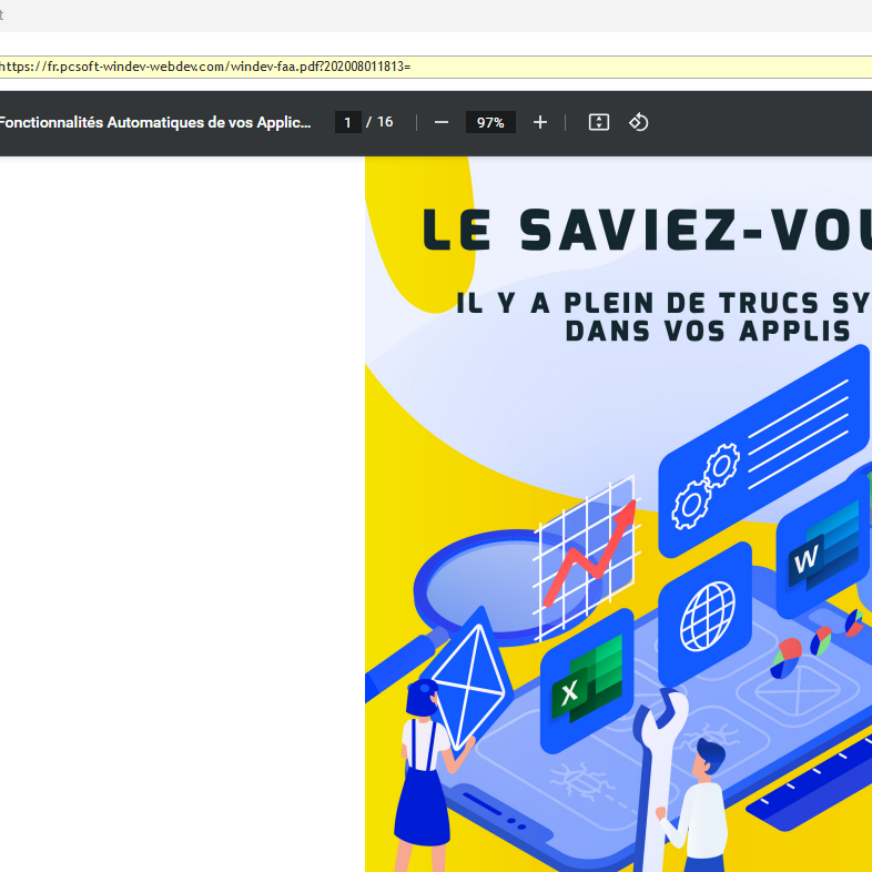 Dans le menu « Configuration », ou « Aide », il est possible de consulter les fonctionnalités de vos applications (FAA), accessibles sur tous nos logiciels développés en Windev.