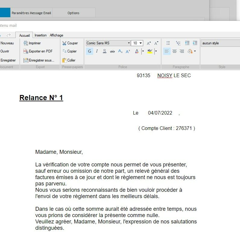 DétailsLors de la génération des mails de relance, il sera maintenant possible de consulter et modifier le contenu du mail de relance qui sera envoyé au client.
